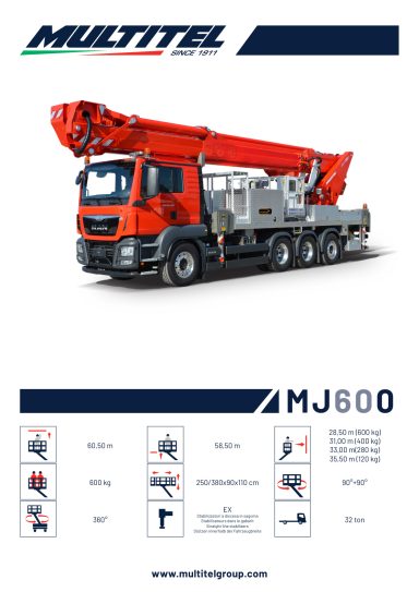 La MULTITEL MX21D è una piattaforma aerea autocarrata con braccio articolato su veicolo 3,5 t, progettata per garantire alte prestazioni in quota e grande versatilità operativa.