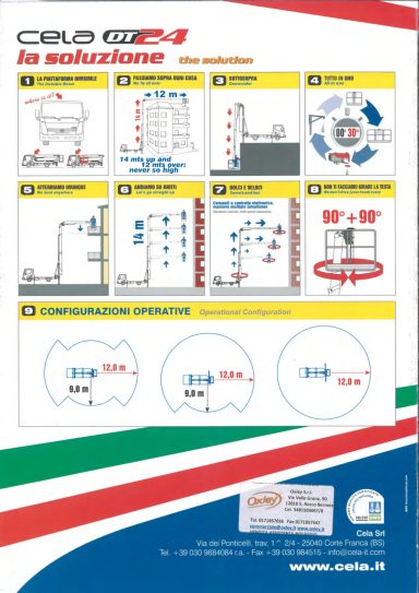 La CELA DT24 è una piattaforma aerea autocarrata con doppio braccio telescopico, montata su veicolo da 3,5 t.