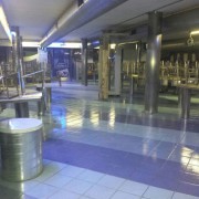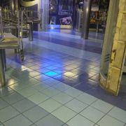 Lavaggio mediante macchina lava pavimento (monospazzola) dell’intera aera con prodotto specifico solvente pulitore per asportazione dello sporco tenace presente nei micropori del pavimento.