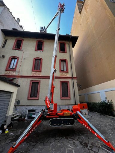 Il ragno Multitel è una piattaforma aerea cingolata articolata progettata per lavori in quota in spazi ristretti e su terreni irregolari. È dotato di un sistema di bracci articolati e sbraccio laterale significativo, ideale per operazioni di manutenzione, installazione e lavori edili. Questo tipo di piattaforma è particolarmente adatta per interventi elettrici e impiantistici, manutenzione facciate, potatura alberi e cantieri con accesso stretto o pavimentazione delicata