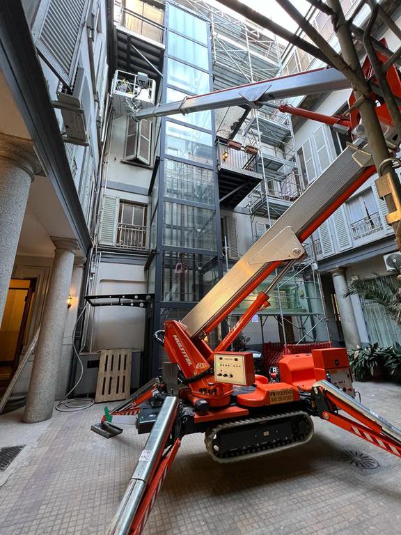 Il ragno Multitel è una piattaforma aerea cingolata articolata progettata per lavori in quota in spazi ristretti e su terreni irregolari. È dotato di un sistema di bracci articolati e sbraccio laterale significativo, ideale per operazioni di manutenzione, installazione e lavori edili. Questo tipo di piattaforma è particolarmente adatta per interventi elettrici e impiantistici, manutenzione facciate, potatura alberi e cantieri con accesso stretto o pavimentazione delicata