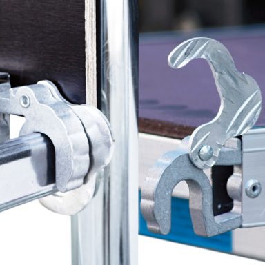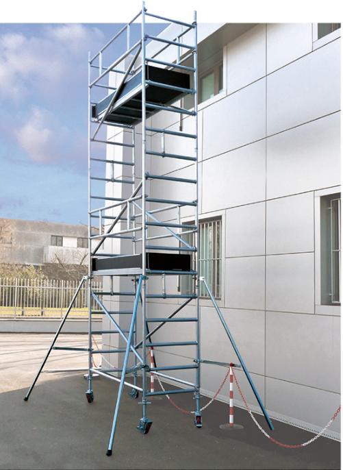 Ponteggio di facile e rapido montaggio grazie alla leggerezza dei materiali utilizzati e agli agganci automatici che non richiedono l’uso di utensili; massima stabilità in ogni configurazione.